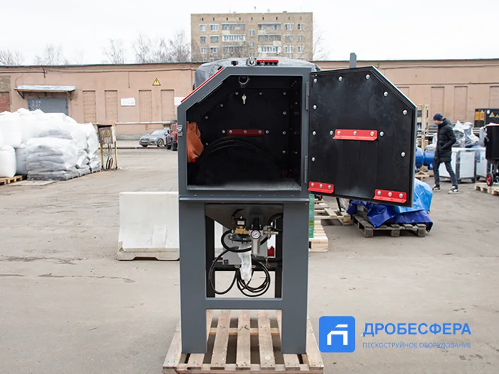 Предлагаем компактную конструкцию для абразивоструйной обработки с целью устранения ржавчины, окалины, нагара, грата, старого ЛКП, удаления заусенцев, изменения степени шероховатости и гладкости поверхности, декоративной обработки, матирования стекол и зеркал, удаления консервирующих составов.