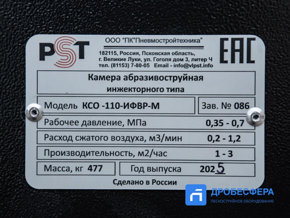 При необходимости получения подробной информации о пескоструйной камере PST КСО-110-И-ФВР-М или других моделях, обращайтесь к специалистам магазина Дробесфера.РУ на электронную почту mail@drobesfera.ru или по телефонам:
