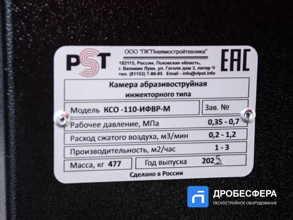 Пескоструйная камера PST КСО-110-И-ФВР-М с боковой загрузкой