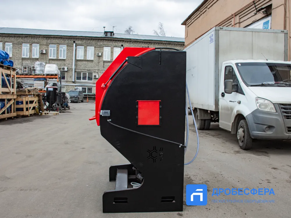 Конструкцией предусмотрена фронтальная загрузка деталей весом до 300 кг на выдвигаемый поворотный стол (поставляется опционально). Для удобства работы с камерой в конструкции имеется педаль, с помощью которой производится запуск процесса пескоструйной обработки и его прекращение, а также регулирование интенсивности процесса.