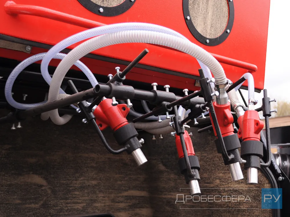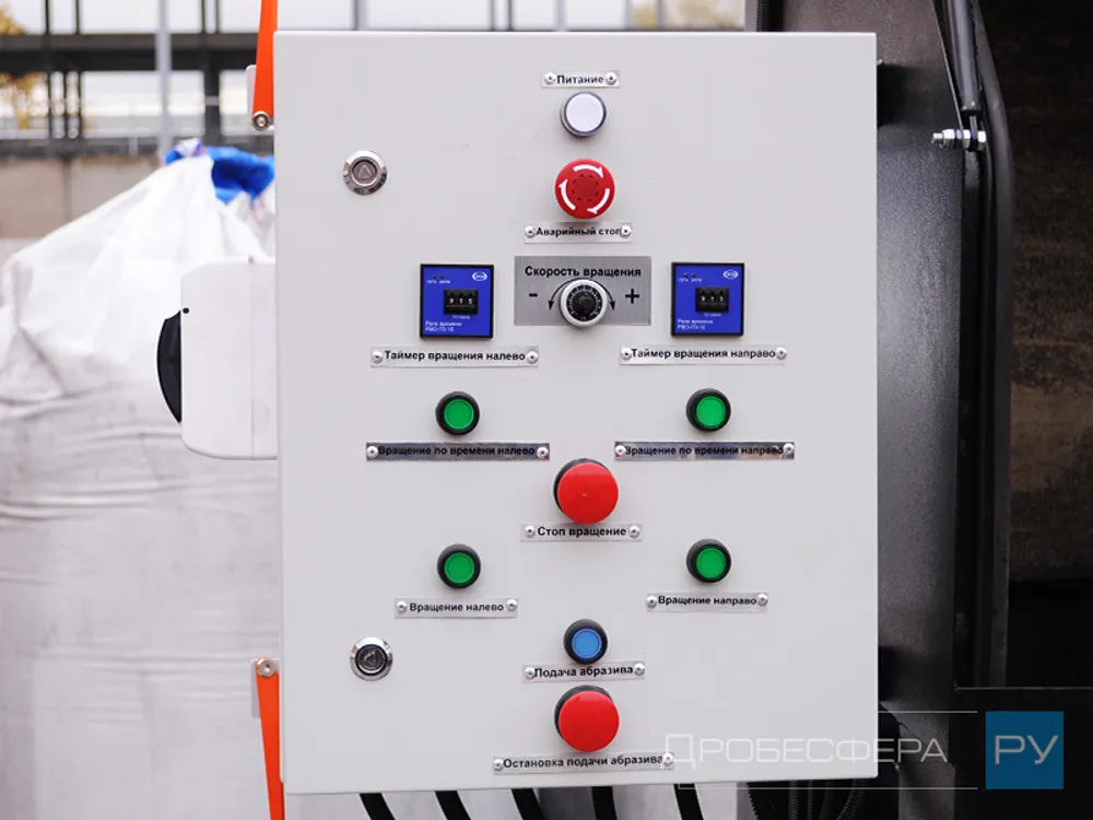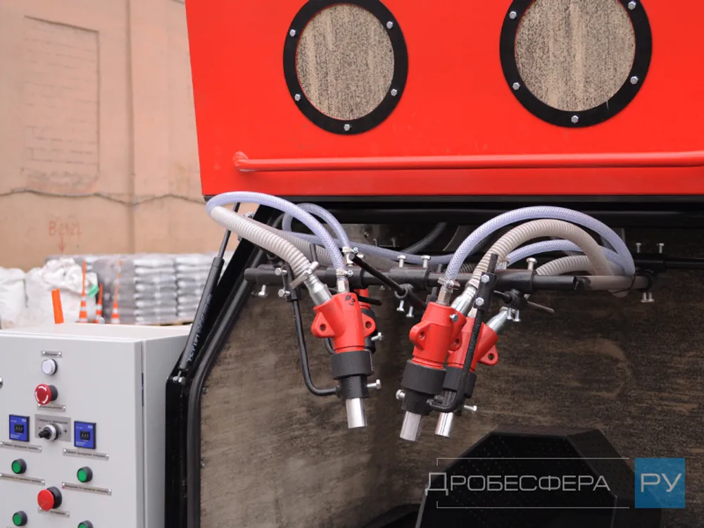Оператор контролирует процесс обработки через смотровое окно и в любой момент может отключить подачу абразива.