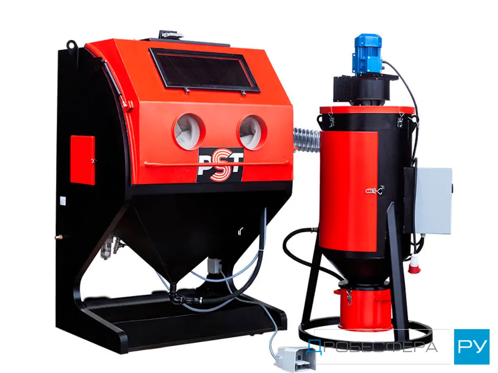 Требование по отсутствию пыли в воздухе помещения, где производится абразивоструйная обработка поверхностей деталей, выполняется при использовании такого агрегата как эжекторная пескоструйная камера PST КСО-115-И-ФВ-М с фронтальной загрузкой.