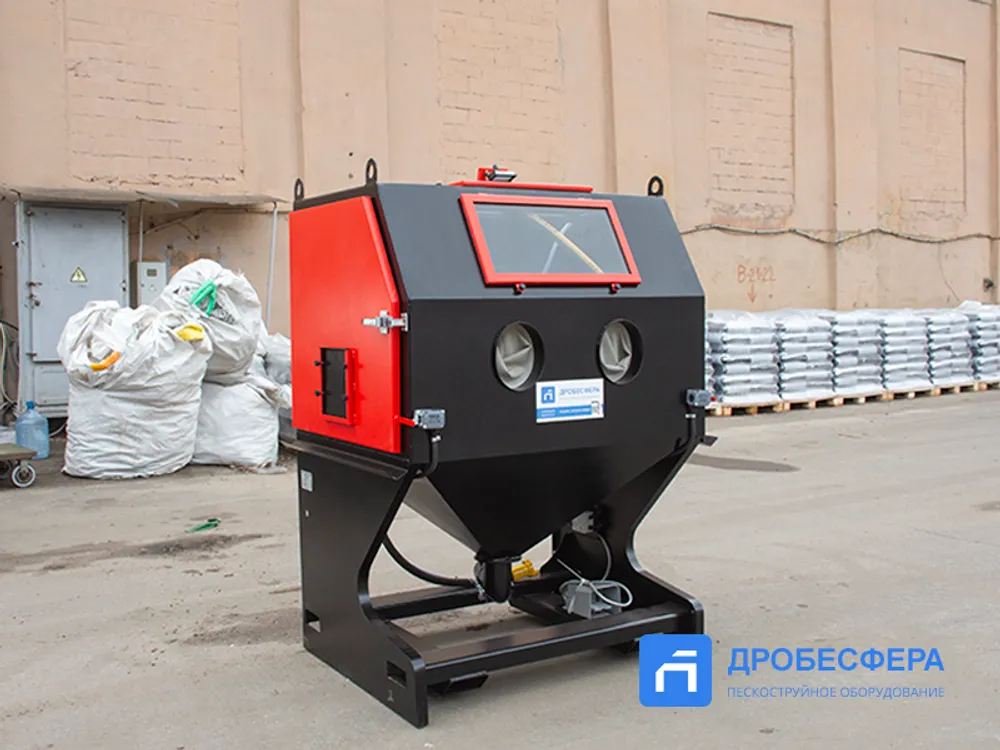 Небольшой или периодический объем обработки поверхности деталей весом до 300 кг позволяет осуществлять установка типа эжекторной пескоструйной камеры PST КСО-115-И-М с боковой загрузкой.
