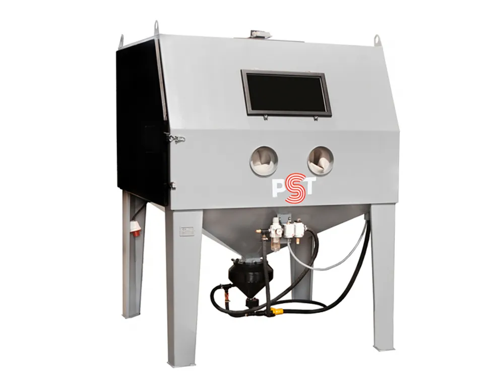 Значительные объемы обработки деталей ли узлов струйным способом обусловливают необходимость при оснащении промышленных предприятий и мастерских в таком оборудовании как пескоструйная камера PST КСО-150-Н-М.