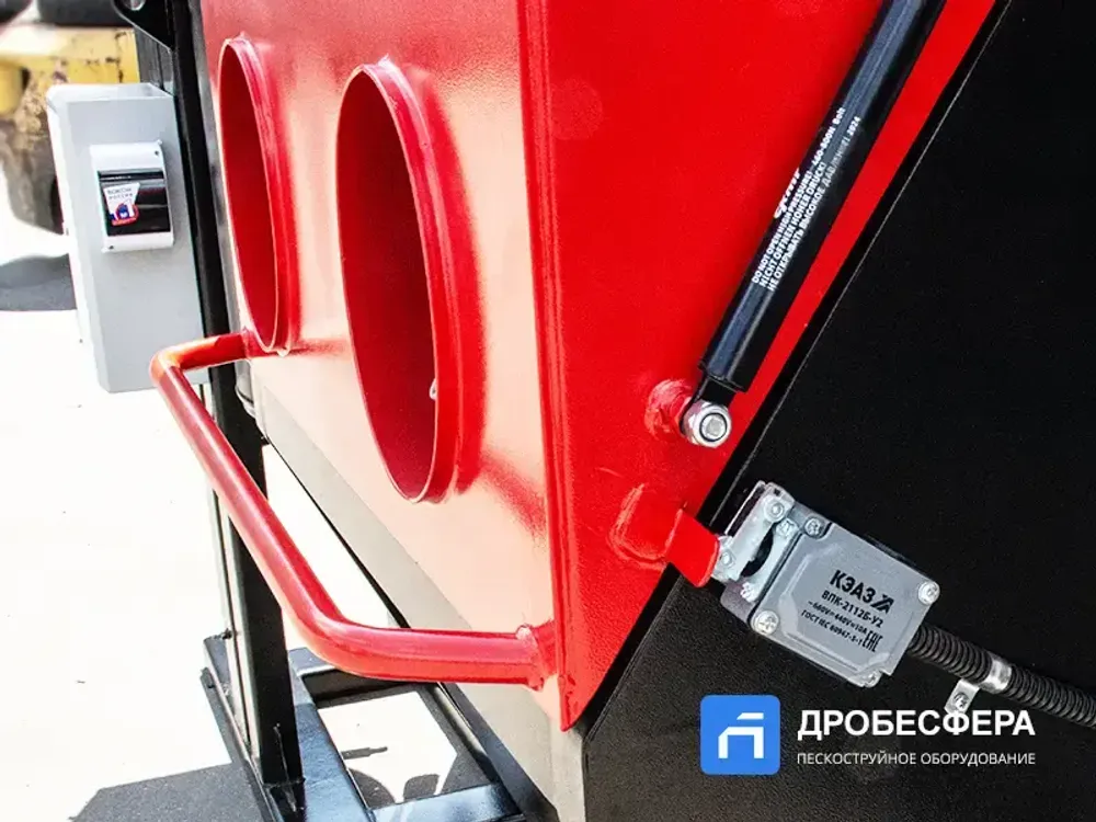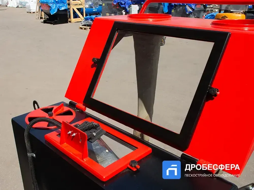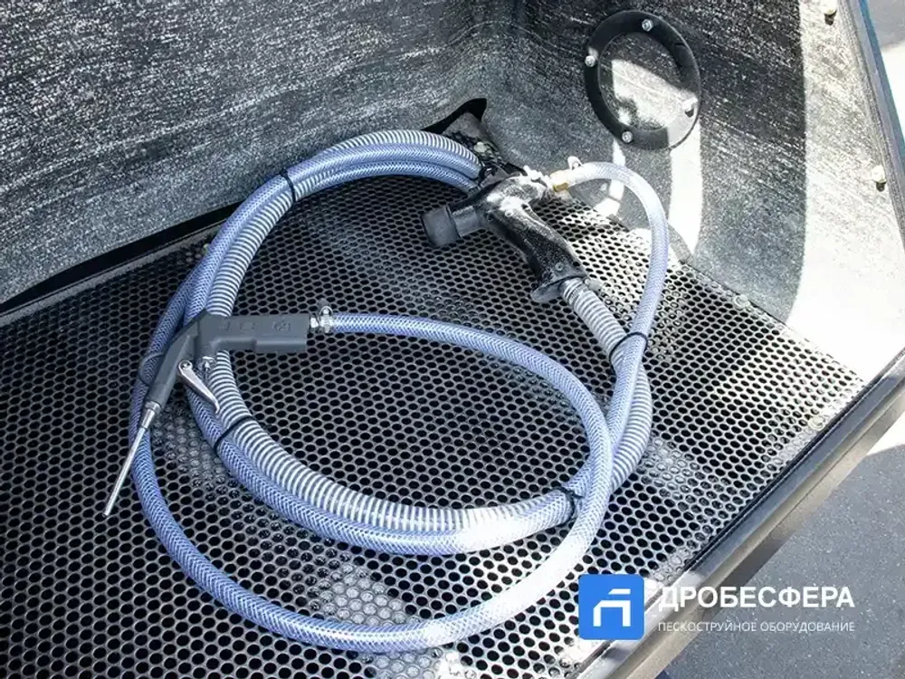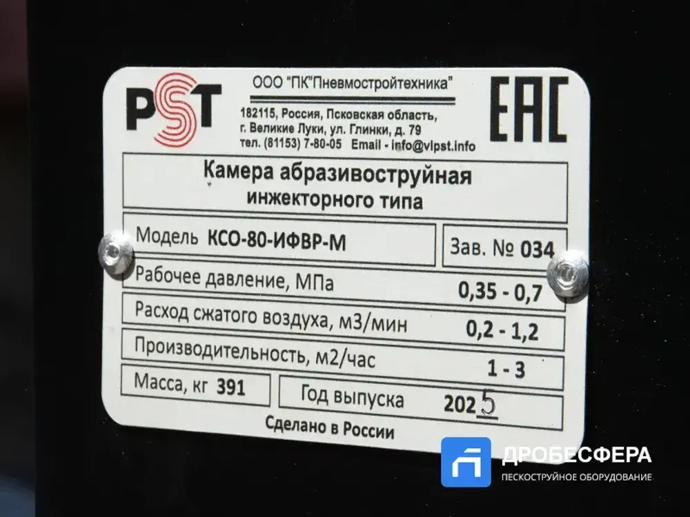 Это стационарная пескоструйная камера эжекторного типа PST КСО-80-И-ФВР-М, в которой предусмотрена: