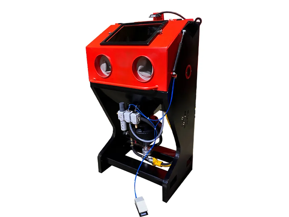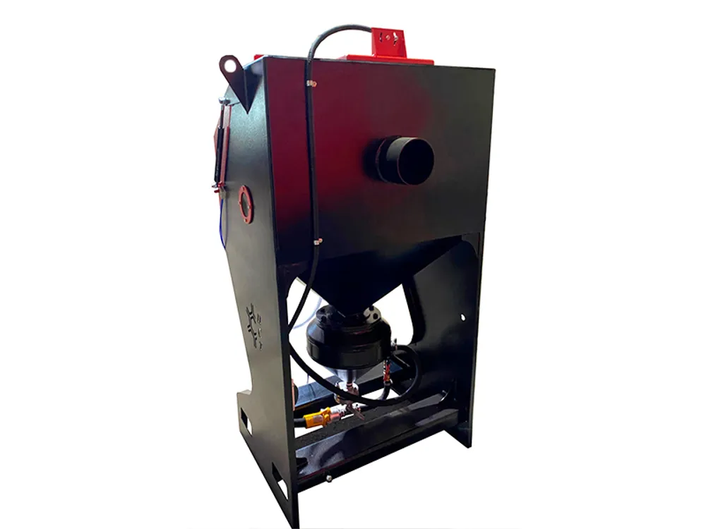 Это исключает запыление воздуха в цеху. В рабочую кабину посредством фронтальной загрузки можно поместить объекты весом до 300 кг. Предусмотрена естественная рекуперация абразива, что позволяет использовать песок, дробь, стеклянные шарики и прочие абразивные составы крупной фракции.