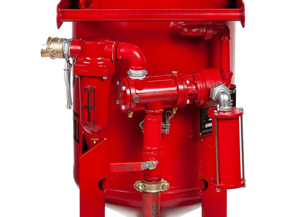 Если задачи по пескоструйной обработке предполагают поднятие сопла относительно аппарата более чем на 20 метров, рекомендуем рассматривать напорные установки на 13 бар.