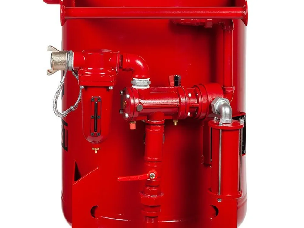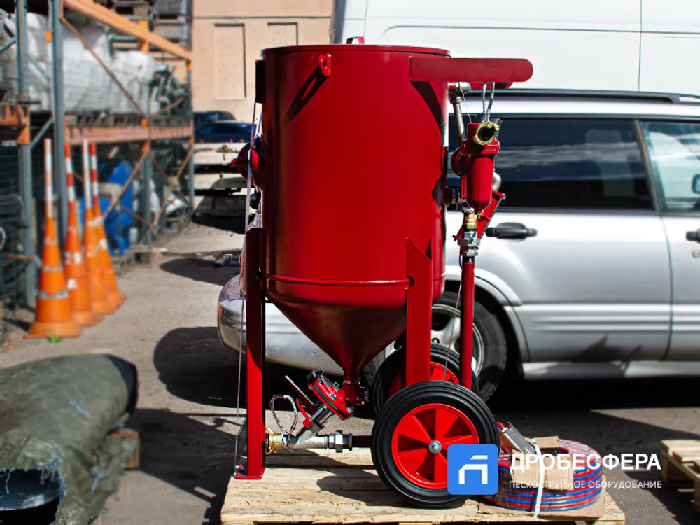 Если задачи по пескоструйной обработке предполагают поднятие сопла относительно аппарата более чем на 20 метров, рекомендуем рассматривать напорные установки на 13 бар.