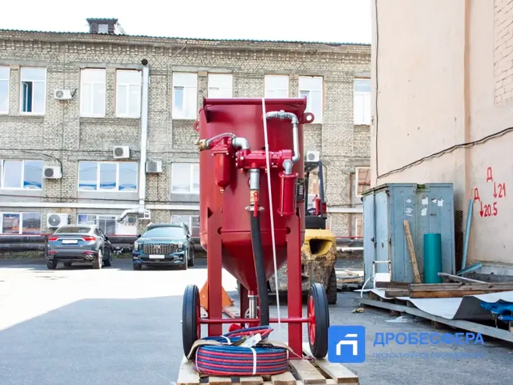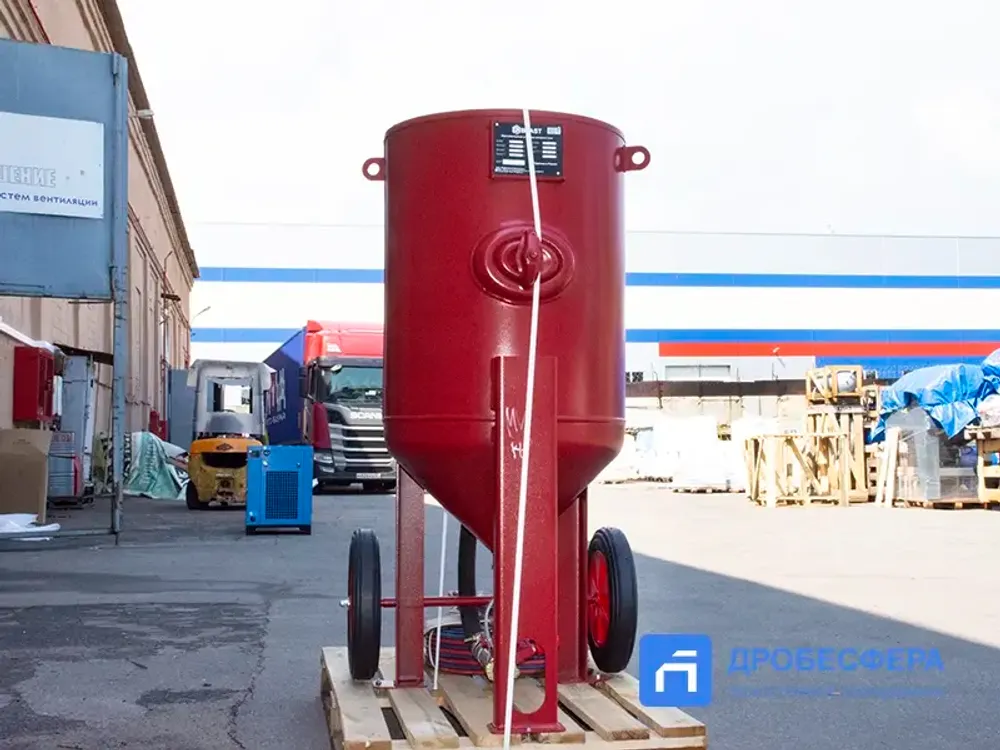 Если задачи по пескоструйной обработке предполагают поднятие сопла относительно аппарата более чем на 20 метров, рекомендуем рассматривать напорные установки на 13 бар.