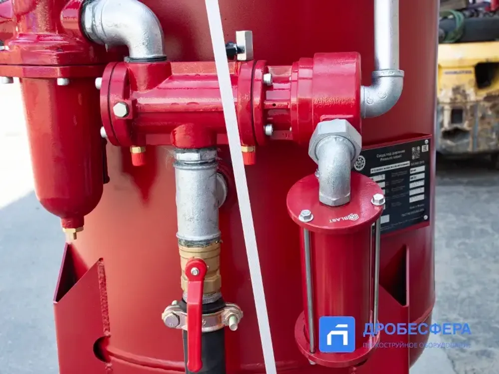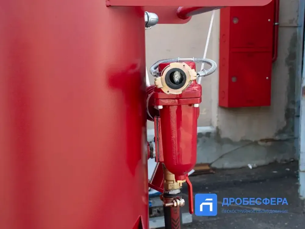 Наличие группы подготовки воздуха необязательно, так как аппарат оснащен фильтром влаго-маслоотделителем GN CAF. Благодаря ему абразивные частицы не увлажняются, не теряют своих абразивных свойств, не забивают дозатор, рукава и сопло, а сама дробь в баке не слеживается.