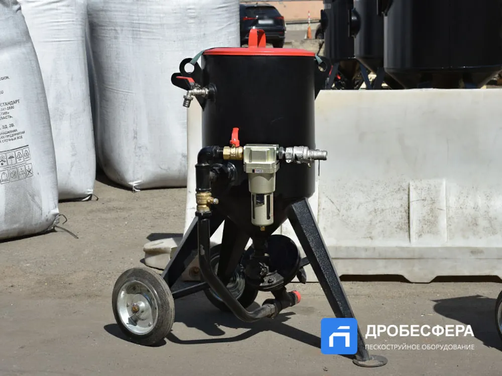 Дополнительно может поставляться фильтр очистки воздуха для дыхания оператора, сопла, напорные абразивные рукава и другие компоненты.