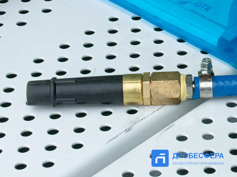 На пистолет подается сжатый воздух, давления которого достаточно, чтобы освободить детали и поверхности камеры от застрявших частиц абразива и отшелушенного состава.