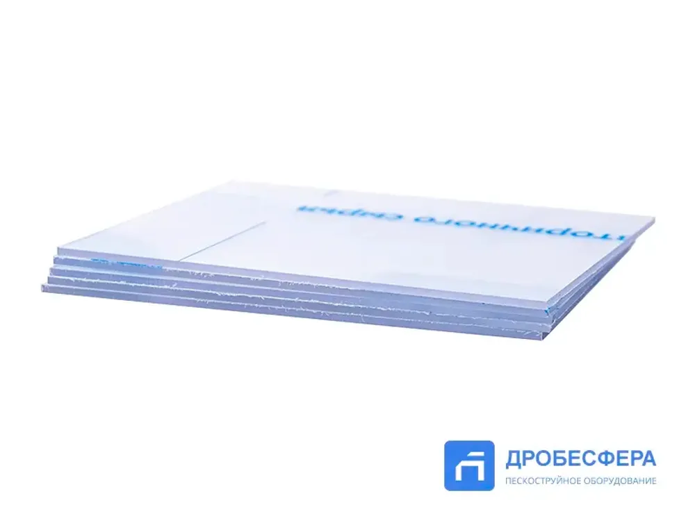 В комплект поставки входит 5 пластин, выполненных из прозрачного оргстекла. Наличие трещин, сколов или помутнение пластин усложняют работу пескоструйщика и оказывают негативное воздействие на зрение. При появлении дефектов на пластине лучше ее заменить.