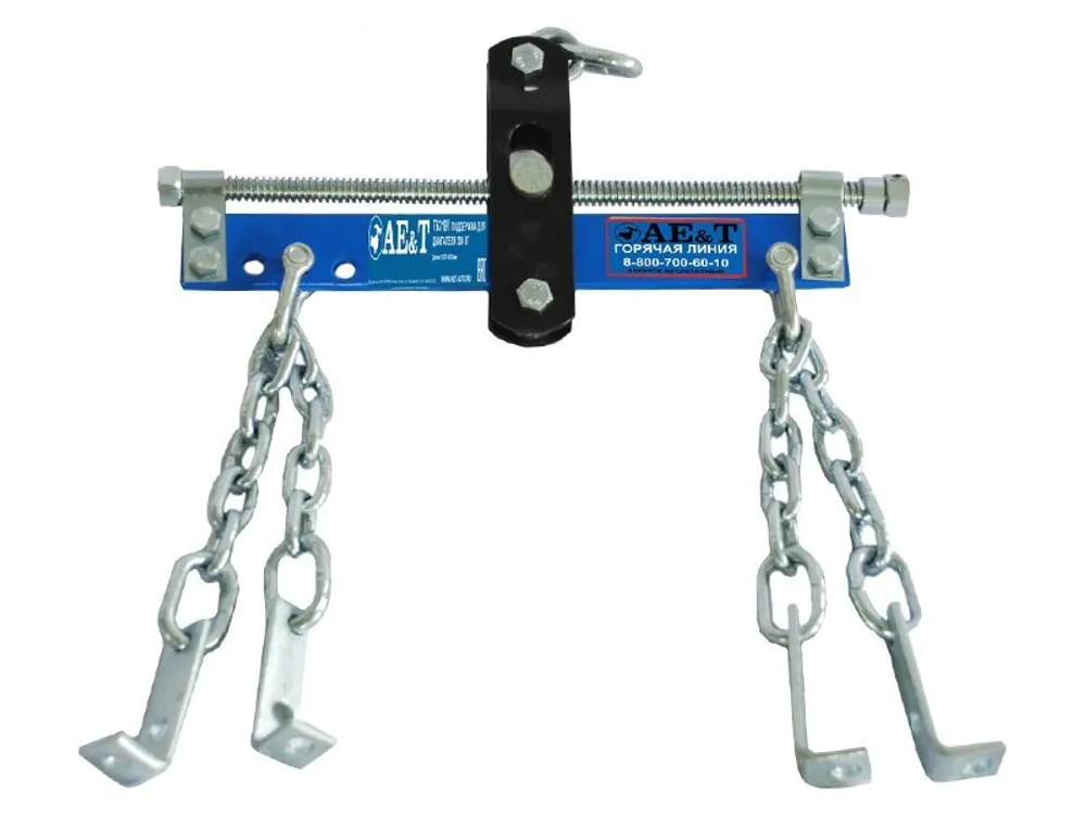 Длительная работа с тяжеловесными агрегатами типа автомобильного двигателя или другого узла сопряжена с необходимостью надежного закрепления объекта и возможности его перемещения в вертикальной и горизонтальной плоскости. При использовании крана как вспомогательное устройство применяется китайская поддержка для двигателя AE&T T63104 грузоподъемностью 675 кг.