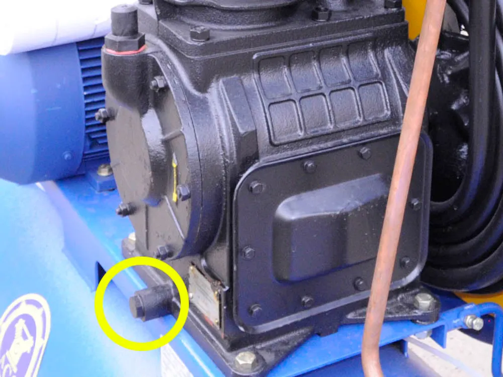 После ремонта или обслуживания компрессора пробка помещается на место для обеспечения наполнения картера маслом и сохранения объема смазки в эксплуатационный период.