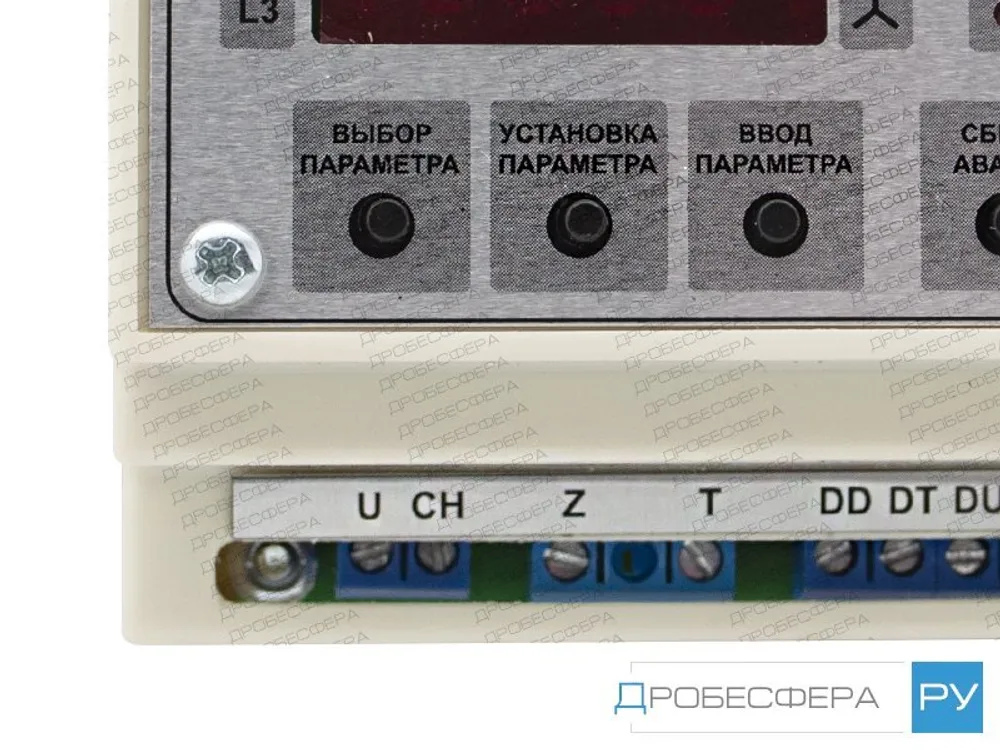 На индикатор выводятся фазные напряжения, уставки порогов срабатывания и уставки времен задержек, сообщения об авариях.