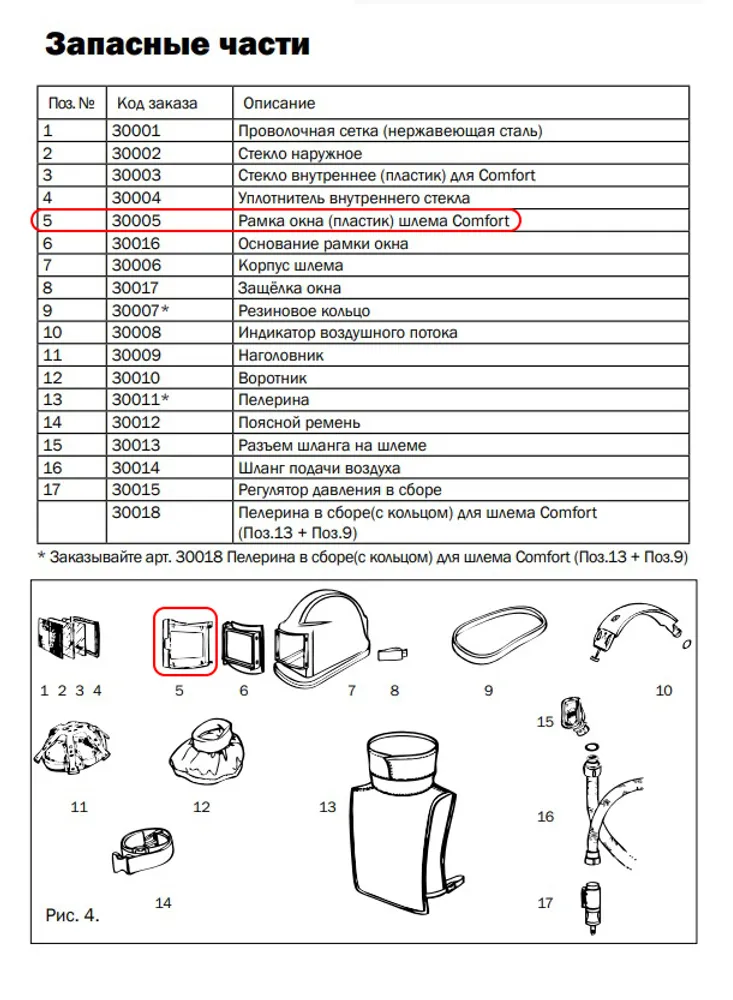 Рамка окна для шлема пескоструйщика Comfort арт. 10130005