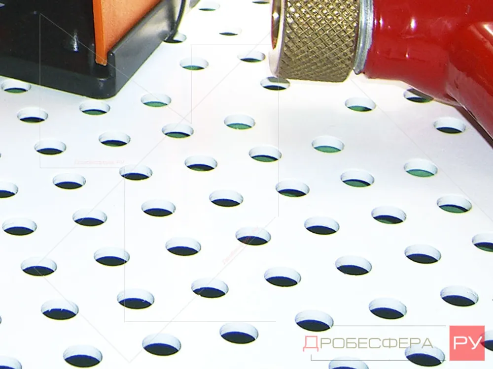 Столешница в виде решетки предназначена для камер CAB-110 и позволяет абразиву и отработанному слою ссыпаться в емкость для отработки с последующей отправкой на сито (рекуперацию, рециркуляцию) и далее по технологическому процессу, предусмотренному в каждой модификации.