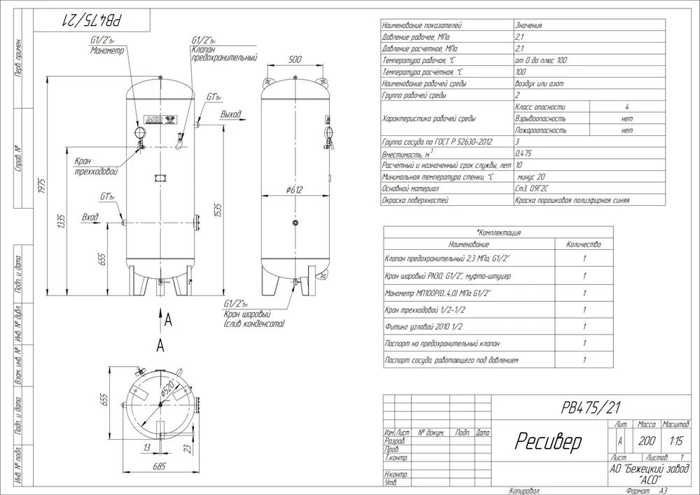 Предлагаем вертикальный ресивер РВ 475/21, который компактен и обеспечивает стабилизацию пневморесурса по давлению перед подачей на потребляющее оборудование.