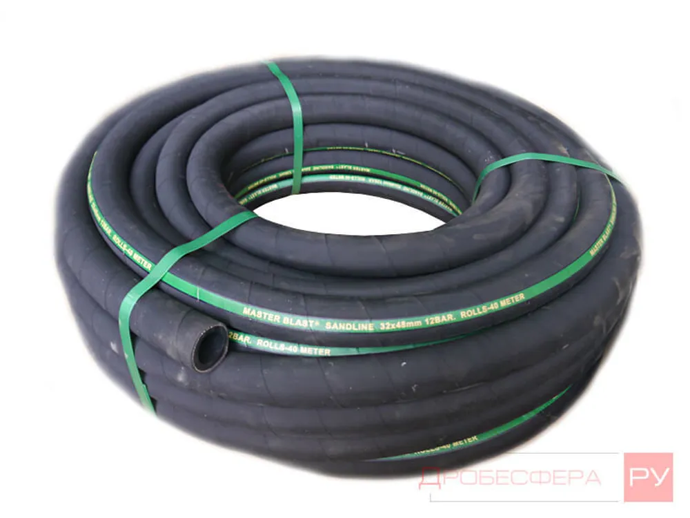 Предлагаем использовать пескоструйный рукав MASTER BLAST® SAND LINE 32х48 мм, внутренний/наружный диаметр которого указан в маркировке на поверхности шланга и составляет соответственно 32 мм и 48 мм.