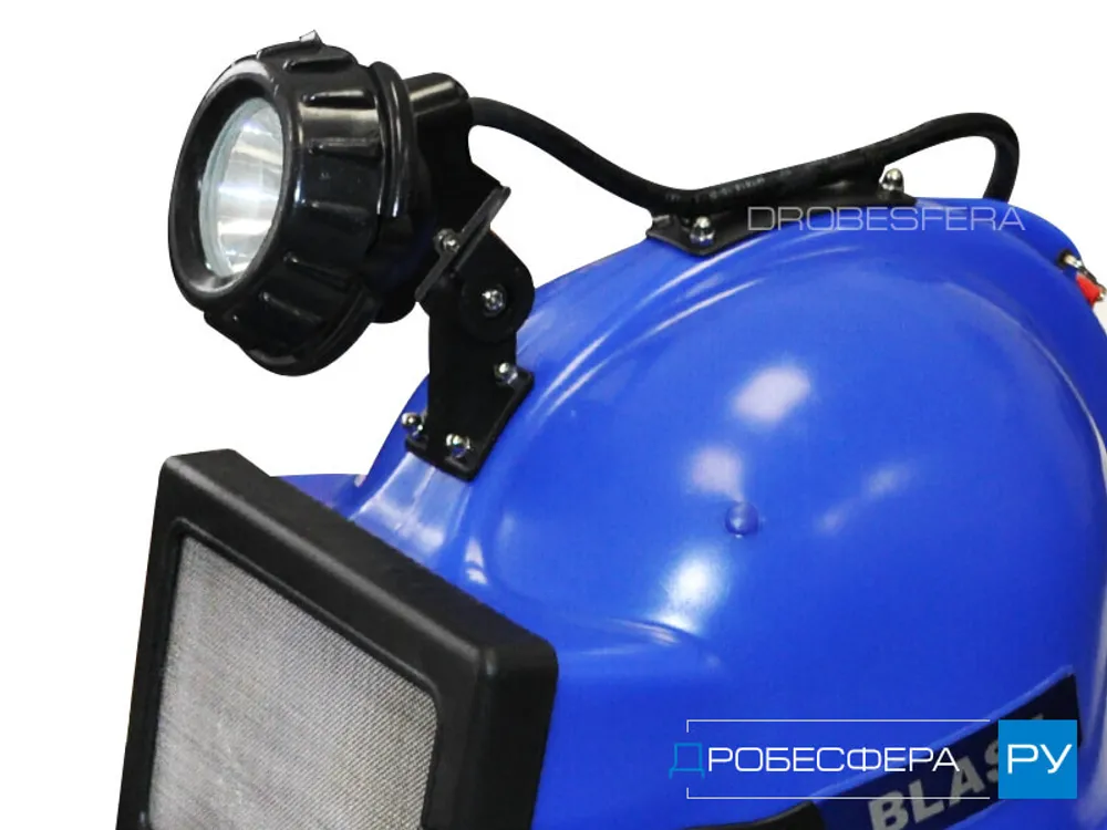 - светодиодная лампа пескоструйщика, которая закреплена на шлеме и обеспечивает обзор.