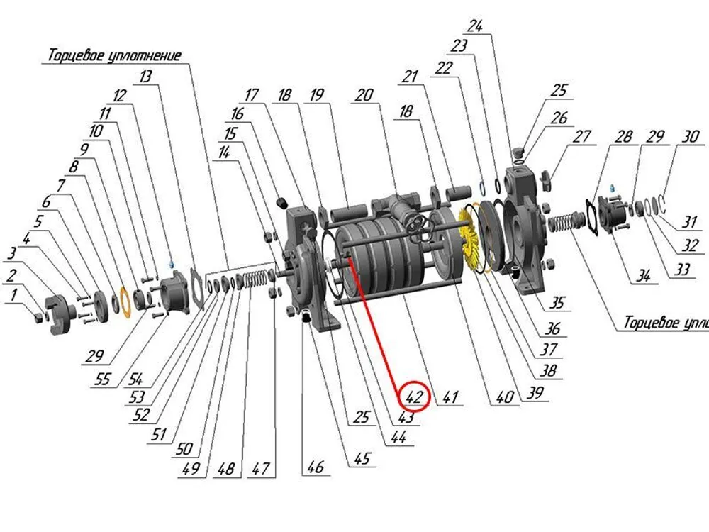 Задача шпонок — передача крутящего момента валу насоса. Эти призматические детали с плоскими торцевыми сторонами изготовлены из сплава, который устойчив к длительному механическому воздействию, резких перепадов компрессии и температуры рабочей среды.