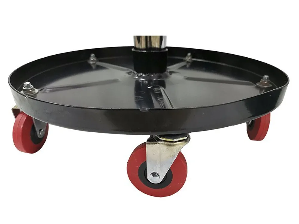 Для размещения инструментов и мелкого крепежа в конструкции предусмотрен пластиковый поддон. Выдвижная труба фиксируется в нужном положении с помощью гидравлического регулировочного рычага, обеспечивая высоту 350-530 мм.