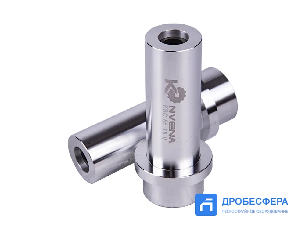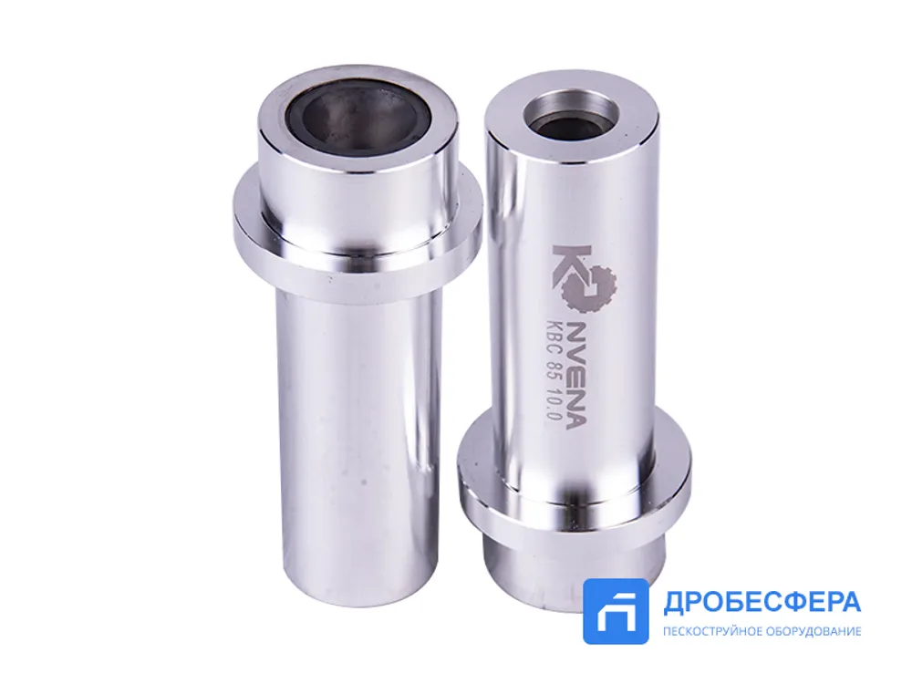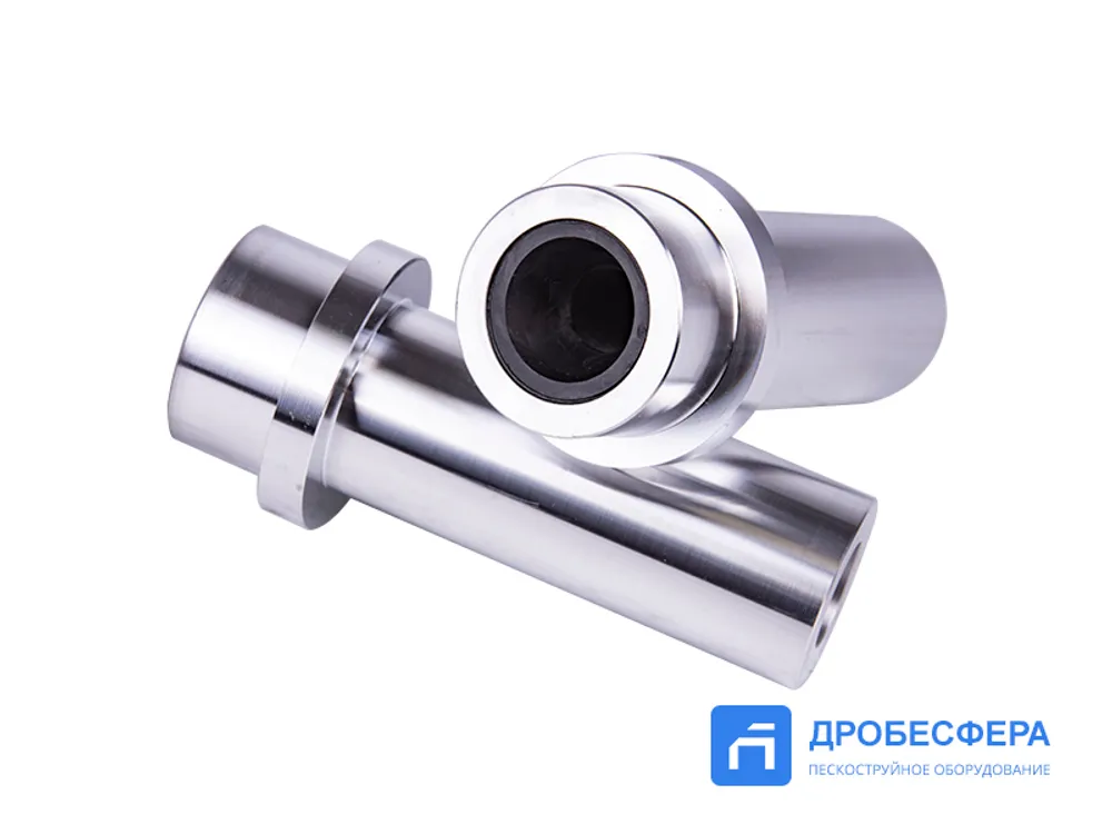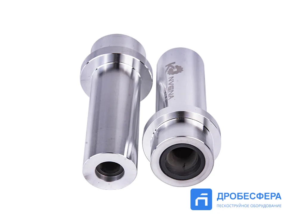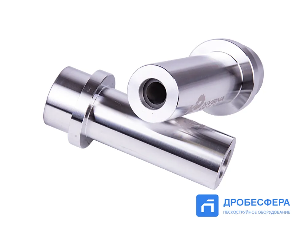 Это сменный элемент пескоструйного аппарата, который предполагает наличие внутренней вставки из карбида бора в алюминиевом корпусе. Такая конструкция с использованием твердосплавной вставки и позволяет соплу работать до 1000 часов с агрессивными абразивами. Деталь может быть использована с хвостовиком такой же конструкции.