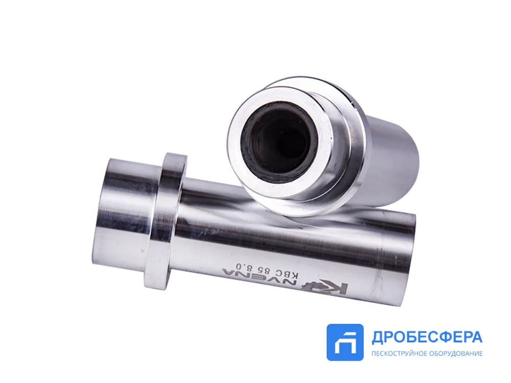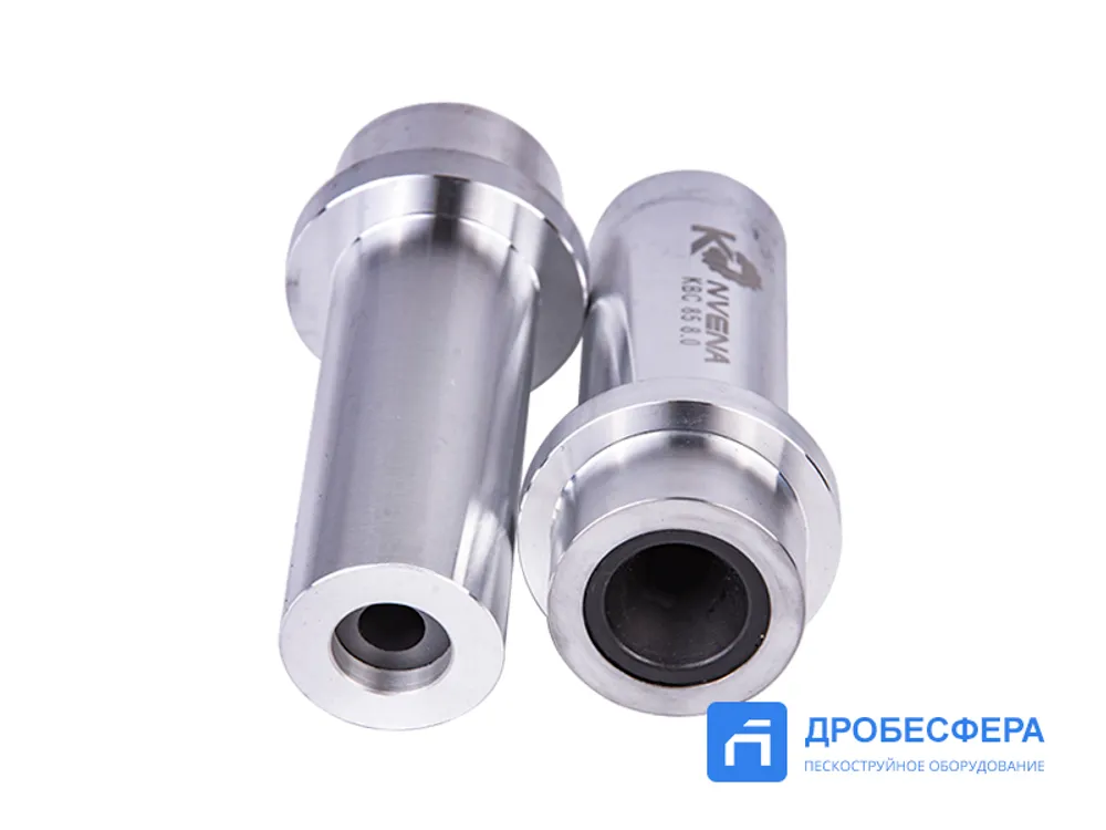 Даже при интенсивной работе и применении абразивного песка мелкой фракции внутренняя вставка из карбида бора защищает алюминиевый корпус детали от механического воздействия абразива, подаваемого под давлением 6-7 атмосфер.