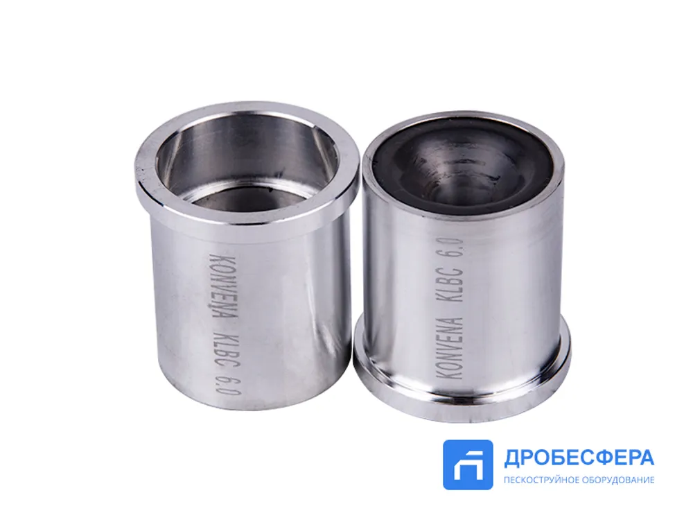 Сопло Konvena KLBC-6 используется как насадка на KBC-6 с целью повышения коэффициента эффективности обработки поверхностей абразивом. Надевается на KBC-6 перед закреплением на соплодержателе. Также используется при производстве совмещенных сопел KWBC-6.