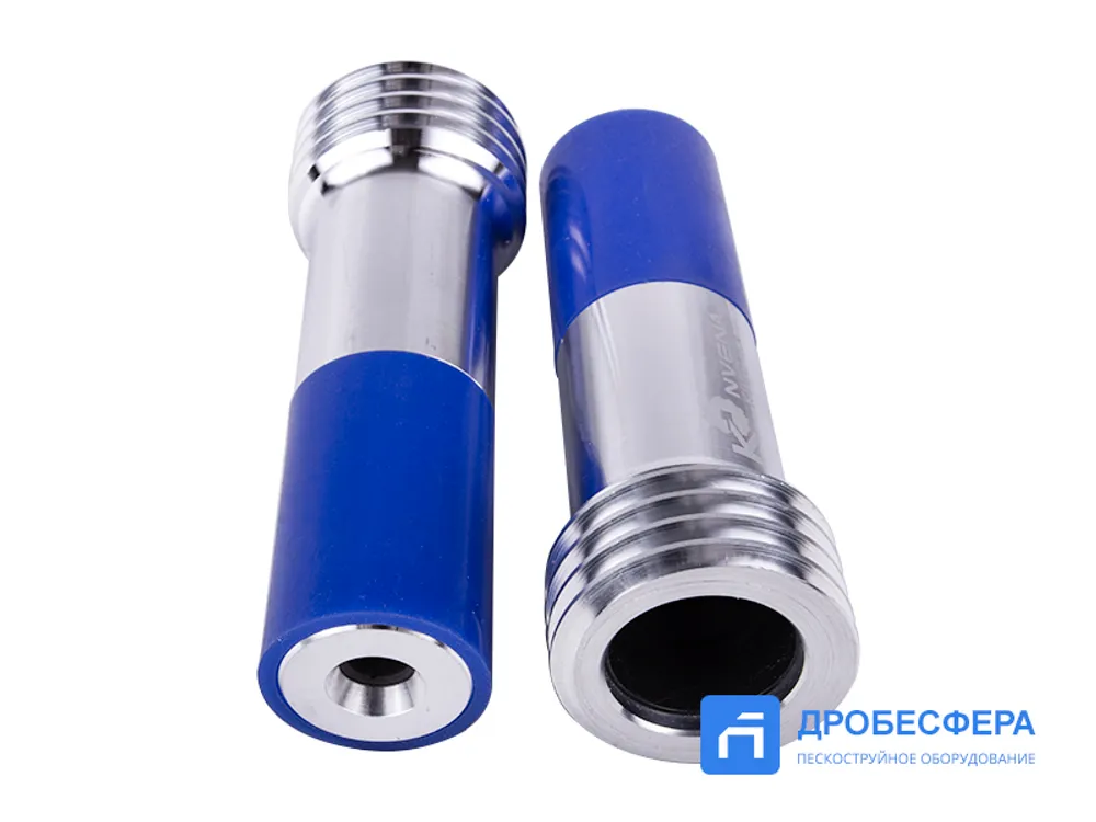 Конструкция сопла предусматривает наличие алюминиевого корпуса, защищенного силиконовой оболочкой, и внутренней вставки, выполненной из карбида бора – материала, обеспечивающего длительный эксплуатационный ресурс.
