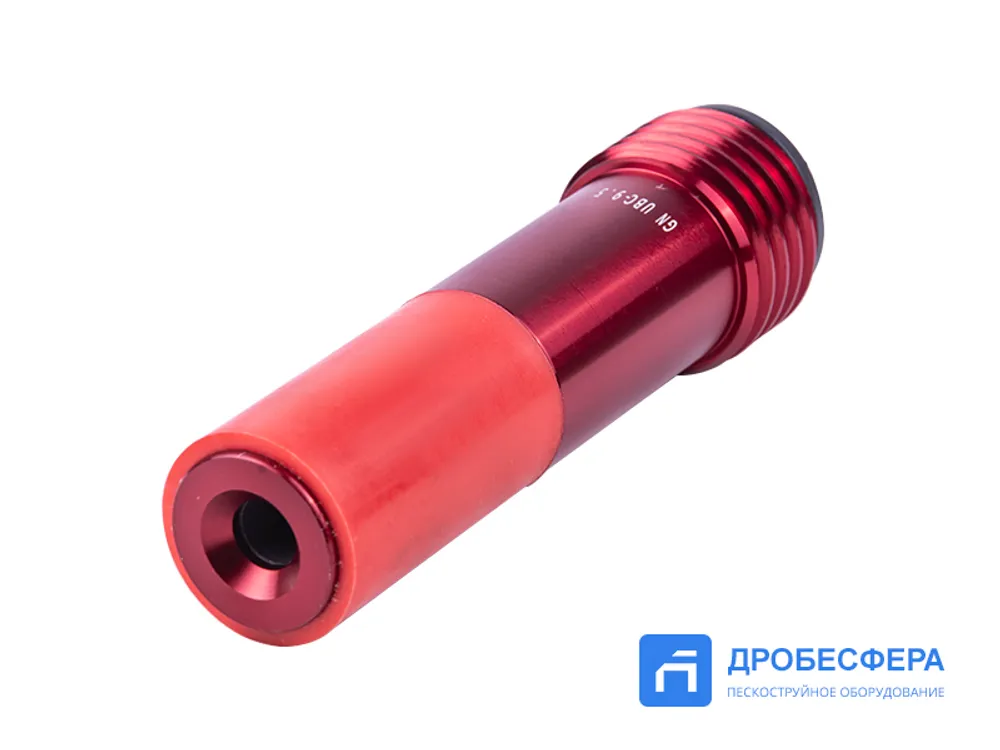 Изготовление из карбида бора и алюминиевая внешняя оболочка обеспечивают соплу возможность многочасовой непрерывной работы пескоструя. Алюминиевое покрытие защищает сопло от внешнего воздействия. Заблаговременное приобретение сопел Вентури UBC-9,5 в достаточном количестве исключает простой при необходимости абразивоструйной обработки.