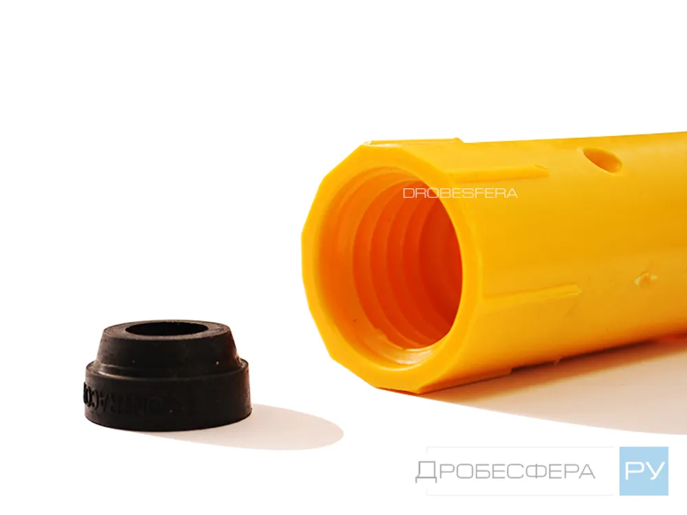 Соплодержатель NHP-0 представляет собой короткое цилиндрообразное устройство с внутренней резьбой 50 мм, которое крепится на пескоструйный рукав шурупами. Изготавливается из нейлона. В комплект поставки входят резиновые уплотнители и шурупы для крепления на рукаве.