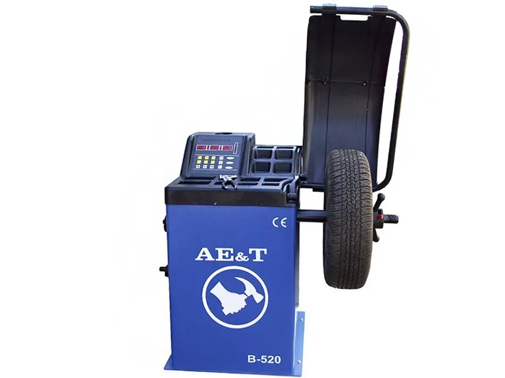 Выверять диски и колеса удобно на автоматических станках типа китайского балансировочного стенда AE&T B-520. Она подключается к источнику электросети напряжением 220 V. Станок оборудован валом повышенной прочности и обеспечивает вращение колеса на скорости 200 об/мин (с пределом шумовой волны 70 дБ).