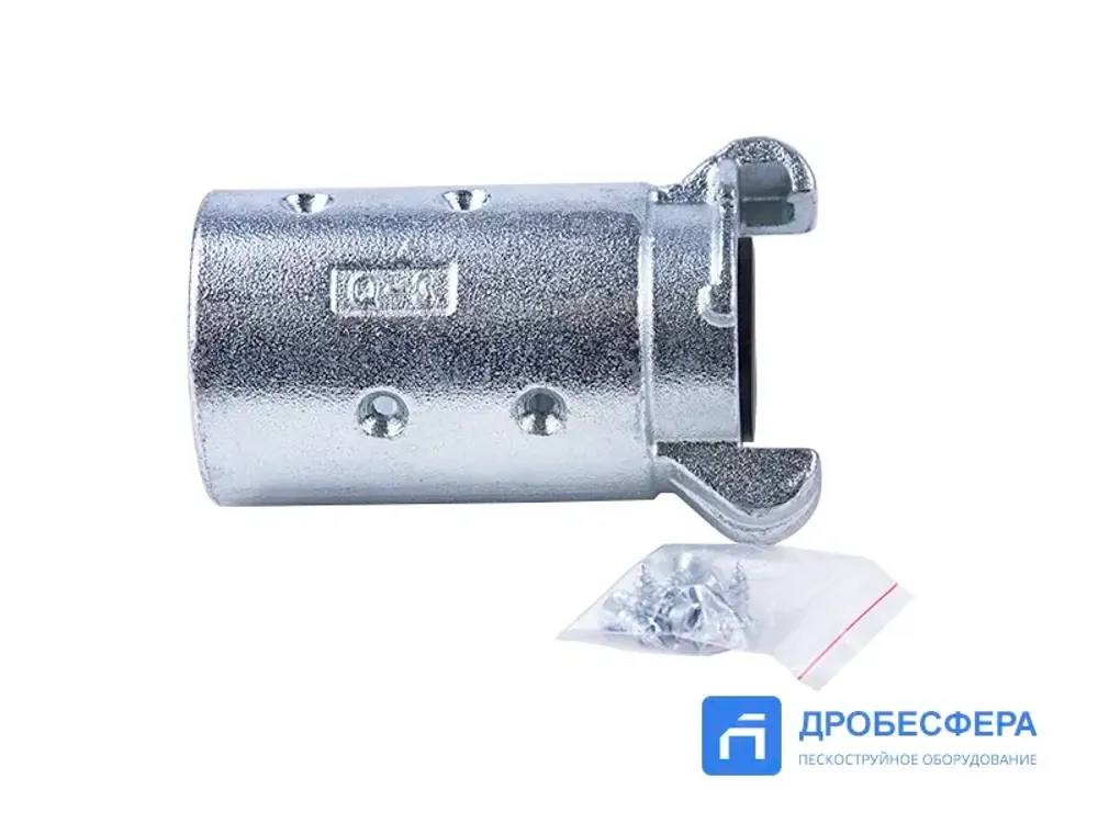 Сцепление металлическое для пескоструйного рукава 38х54 мм CQT-3 типа краб предназначено для надежного соединения шлангов, по которым под высоким давлением поступает абразивно-воздушная смесь.