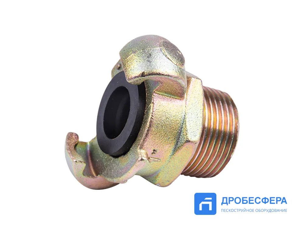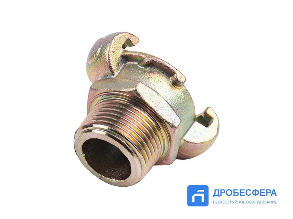 Формирование пневмомагистрали, которая без потери давления транспортирует сжатый воздух от источника до потребляющего оборудования, включая пневмоинструмент и абразивоструйные установки GN-BLAST, обеспечивается при использовании такого крепежа как стальное кулачковое сцепление KAG 10 с наружной дюймовой резьбой.