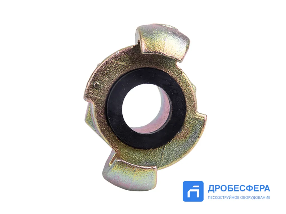 Крепеж изготавливается из ковкого чугуна, имеет защитное гальваническое покрытие, что продлевает срок службы даже при эксплуатации в неблагоприятных условиях. Сцепление обеспечивает плотное примыкание рукава в местах крепления благодаря резиновому уплотнителю, которым комплектуется при поставке. Утечка сжатого воздуха, вызывающая падение давления пневморесурса, исключена.