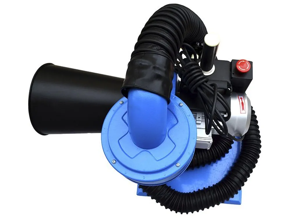 Обрабатывает поток воздуха объемом 900 кубометров в час, не создавая шума, превышающего 75 дБ. Установка работает при подключении к электросети напряжением 380 V. Характеризуется мощностью 0,55 кВт. Мобильна благодаря наличию поворотных колес со стопором.
