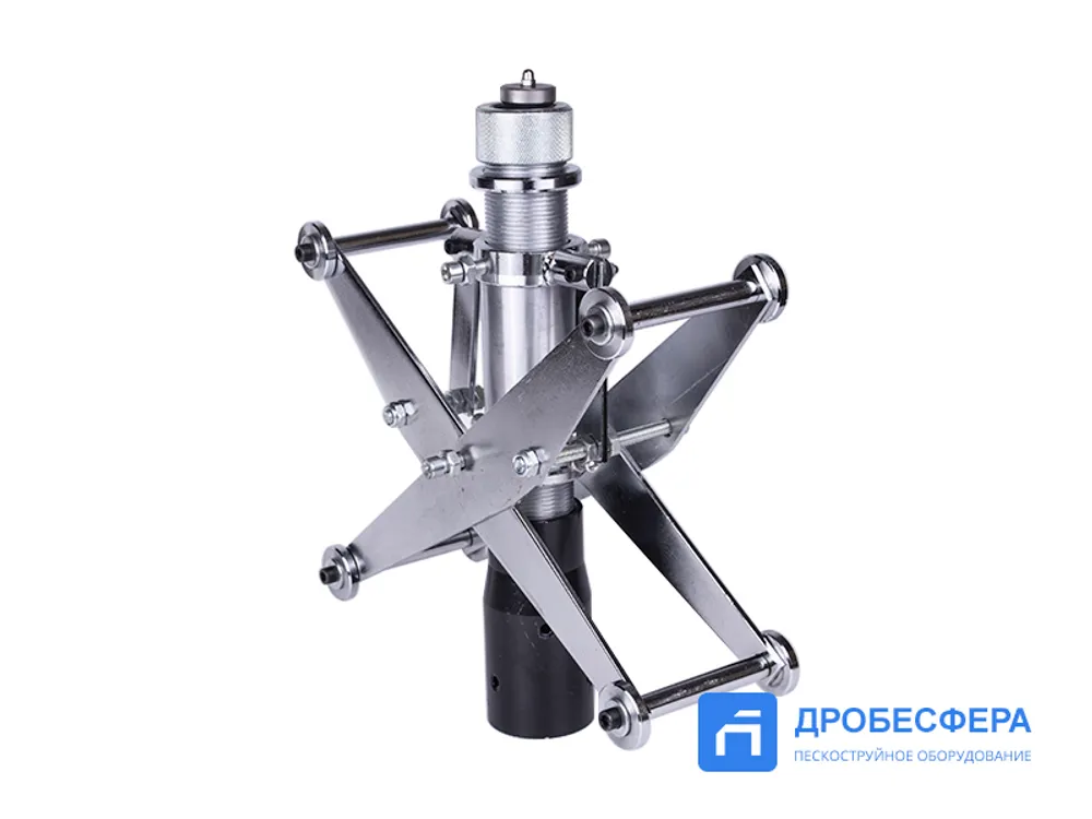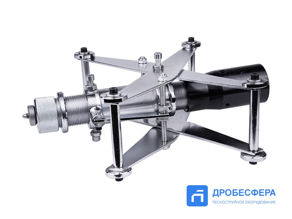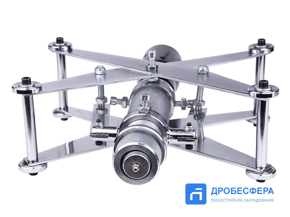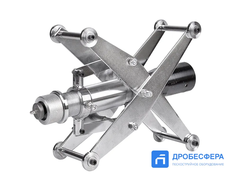 Это приспособление обеспечивает эффективную очистку труб диаметром 60-300 мм перед их использованием при формировании систем коммунального, технологического и другого назначения. Для функционирования необходим сжатый воздух давлением 7 бар, расход которого в минуту оставляет 9,6 кубометра. В час устройство затрачивает до 225 кг абразивного состава.
