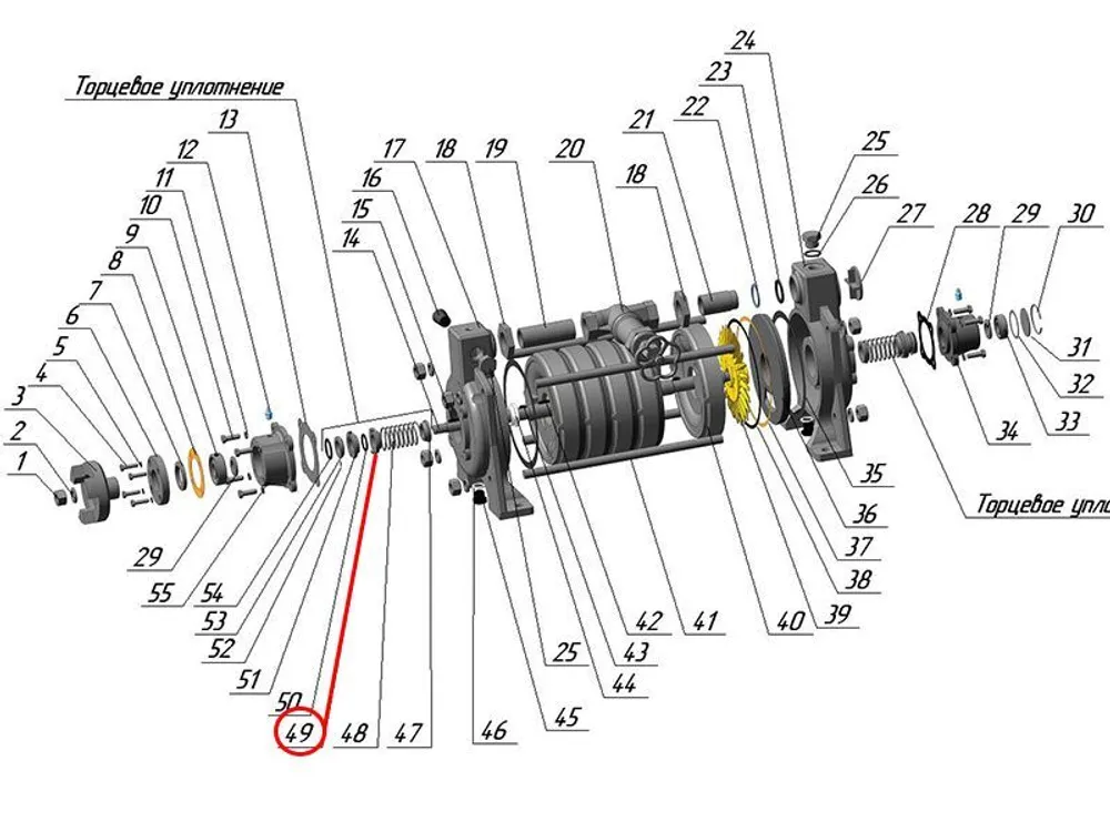 При сборке насоса учитывайте наличие большого количества уплотнительных компонентов, собирая конструкцию строго в соответствии со спецификацией.