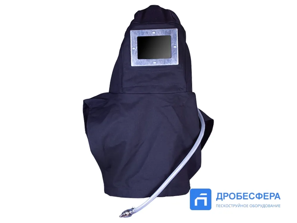 Шлем с плотной пелериной защищает органы дыхания, зрения и слуха пескоструйщика от воздействия абразивных частиц и пыли.